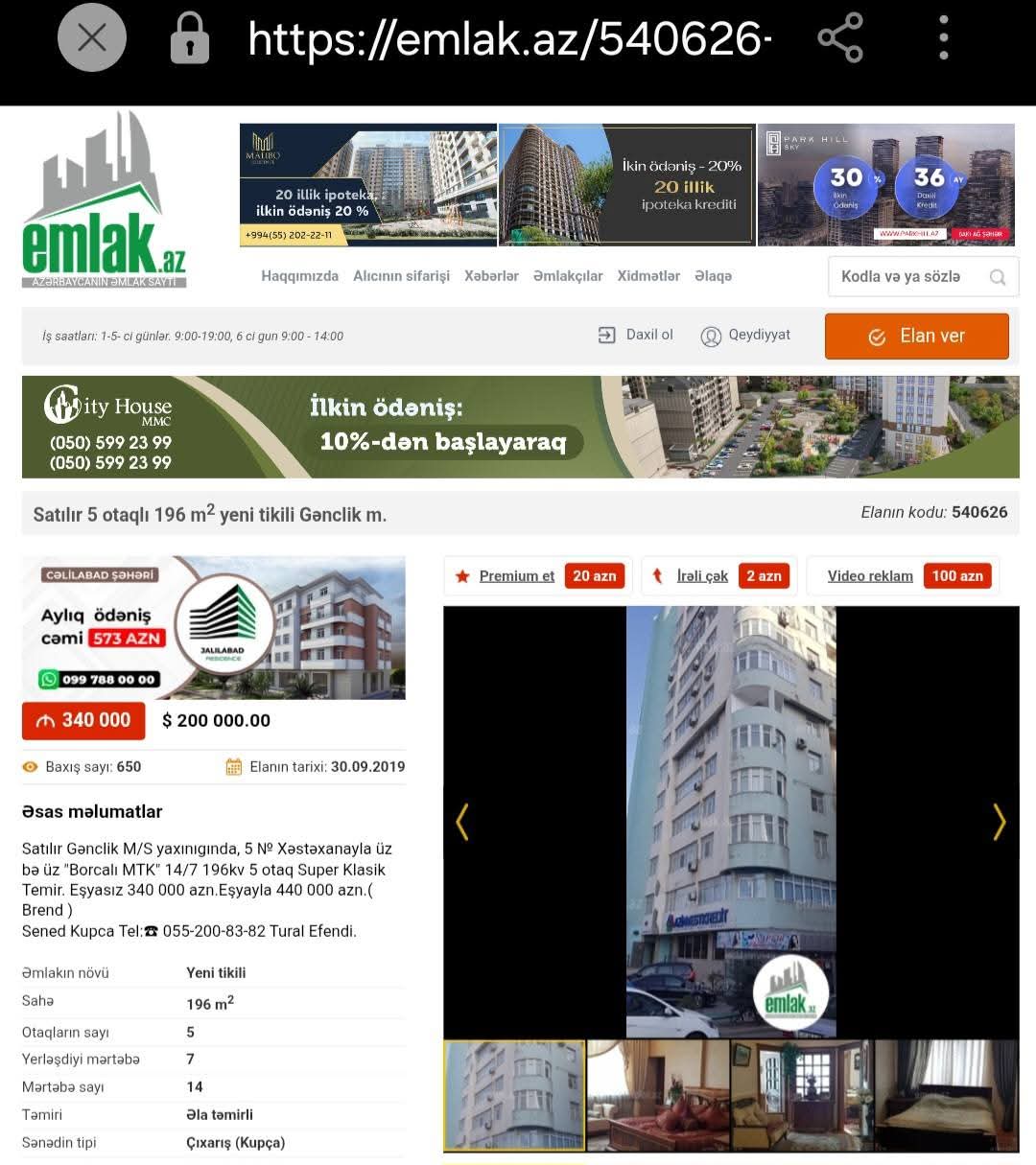 Üstəlik sonuncu şəkildə alqı-satqı elanında həmin binada satılan mənzillə bağlı məlumatda mənzilin kupçalı olduğu haqda məlumat qeyd olunur. Bu necə istismara hazırlıq aktı rəsmiləşdirilməmiş binadır ki, ordakı mənzillərə kupça verilib, hətta həmin binadan dövlət hərracı yolu ilə yarım milyon manata mənzil satışa çıxarılır?! Ünvan yalan, tikən şirkətin adı azdırıcı, binaya istismara hazırlıq aktı verilməməsi ilə bağlı məlumat həqiqətdən uzaq...