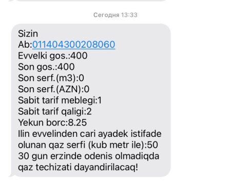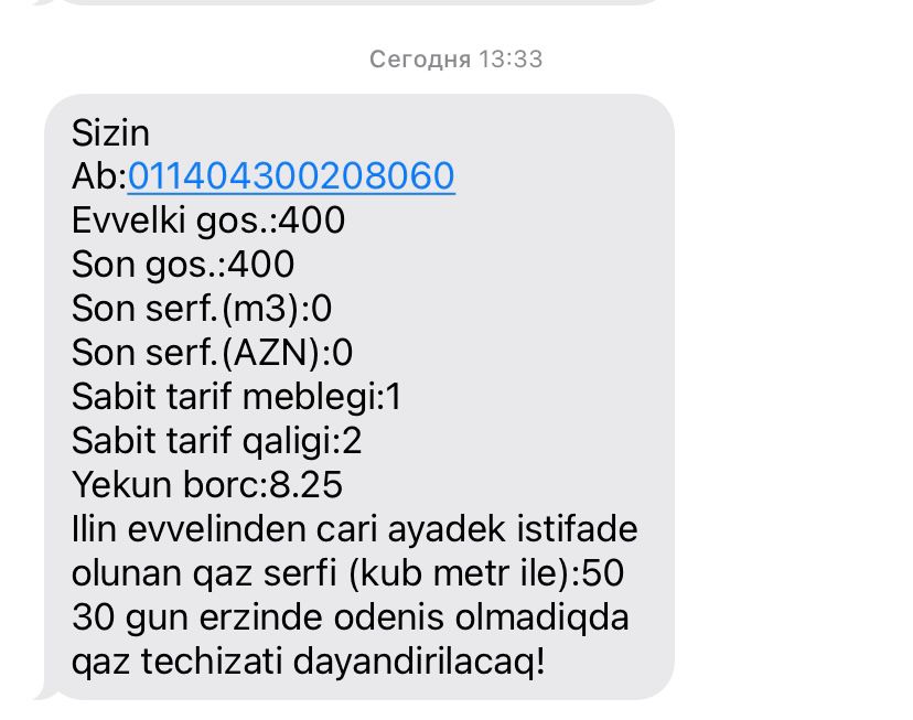 Hüquq müdafiəçisi başına gələnləri belə nəql edir: "Hazırda sayğacda 291 kub göstərici var. Artıq iki aydı qalığı siliblər və iki aydır ki, mənə dalbadal sms gəlir ki sərfiyyat 400 kubdur və mən borcu ödəməliyəm. Antiinhisar və İstehlak Bazarına Nəzarət Dövlət Agentliyi də daxil bütün vecsiz qurumlara şikayət yazmışam. Bu günlərdə Azəriqaz İB Sumqayıt RQİİ-dən məktub gəlib ki, problemi həll etmişik. Bu gün yenə sms gəlib ki, borcu verməsəniz qaz təchizatı dayandırlacaq.