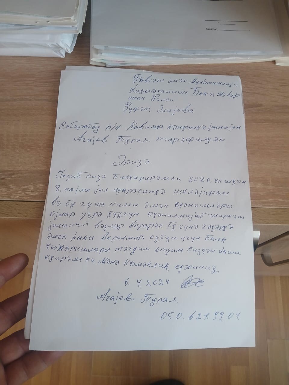 “2020-ci ildən Azərbaycan Avtomobil Yolları Dövlət Agentliyinin 8 saylı Yol İdarəsində işləyirəm. Bir müddətdir əməkhaqqımı ala bilmirəm. Dəfələrlə müraciət etmişəm, amma heç bir nəticə yoxdur. Əmək Müfəttişliyinə də yazmışam, baxan yoxdur. Hər dəfə deyirlər sizə məlumat veriləcək, gözləyin. Ancaq hələ də bir nəticə yoxdur”.