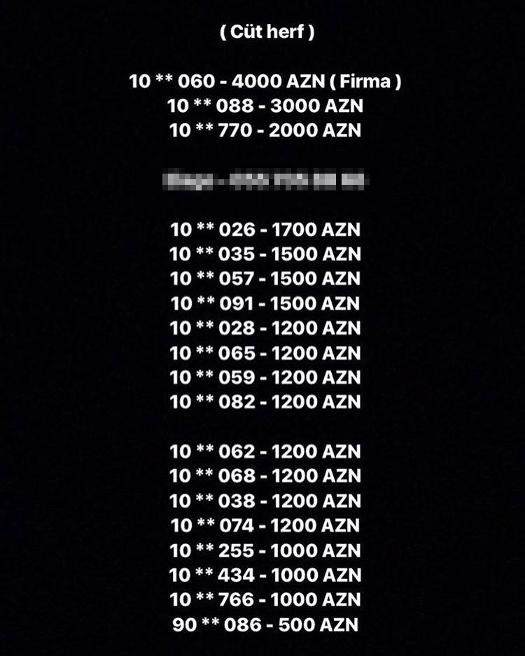 Eyni seriya hərfləri olan nömrələrin qiyməti 2500 manatdır.