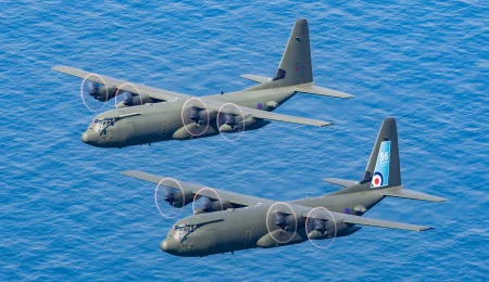 C-130 “Hercules” maksimum 20 tonadək yük daşıma gücünə malikdir. Təyyarə 600 km/saat sürətlə uçur və təxminən 3 800 kilometr məsafə qət edə bilir. Dörd turbovint mühərriklə təchiz edilən bu model ağır yüklə belə qısa zolaqlardan qalxma və enmə qabiliyyətinə görə hərbi logistikada xüsusi əhəmiyyət daşıyır.
