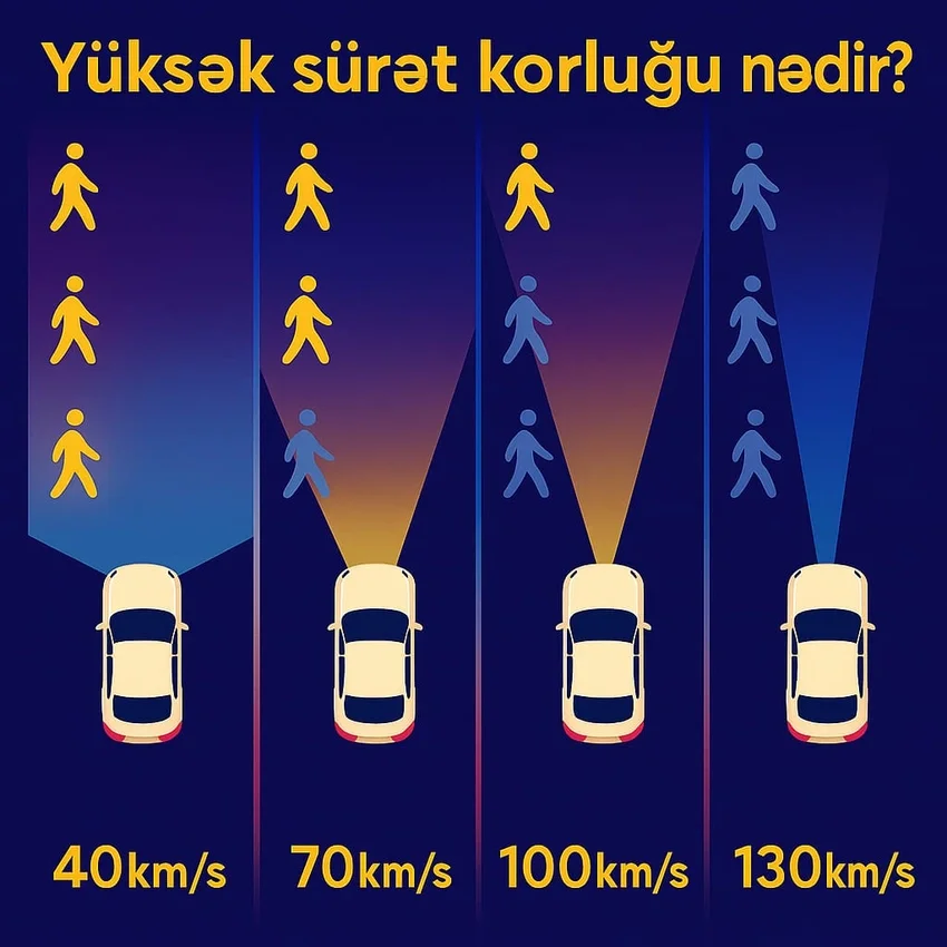 Yolda yüksək sürətlə hərəkət edən sürücülərin ətrafı qavrama qabiliyyəti kəskin zəifləyir.