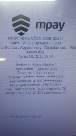 Xırdalan şəhərində yaşayan Ülviyyə Məmmədovanın sözlərinə görə, 18 dekabr tarixində Xırdalan şəhərində yerləşən marketlərin birində “Empay” ödəniş sistemi vasitəsilə tanışına 1000 manat pul göndərmək istəyib. Lakin diqqətsizlik nəticəsində vəsaiti səhvən başqa bir bank kartına köçürüb.