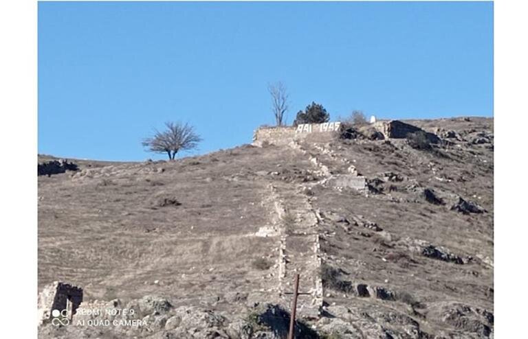4) Müharibdə həlak olanların xatirəsinə ucaldılmış abidənin yeganə salamat qalmış elementi üzərində "1941-1945" yazısı olan Cəbrayıl şəhəri