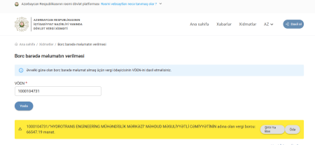 "Hydrotrans Engineering Mühəndislik Mərkəzi" Məhdud Məsuliyyətli Cəmiyyətinin dövlət büdcəsinə vergi borcu olduğu üzə çıxıb.
