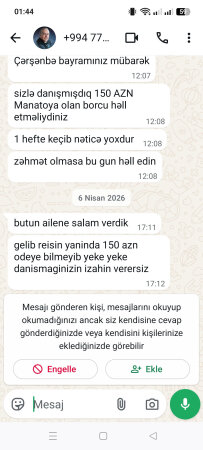 Azərbaycanda əhaliyə kiçik kreditlər təqdim edən “Manato.az” və ya “SF Azerbaijan” BOKT-nin əməkdaşı borcunu ödəməyən vətəndaşa yazdığı mesaj birmənalı qarşılanmayıb.