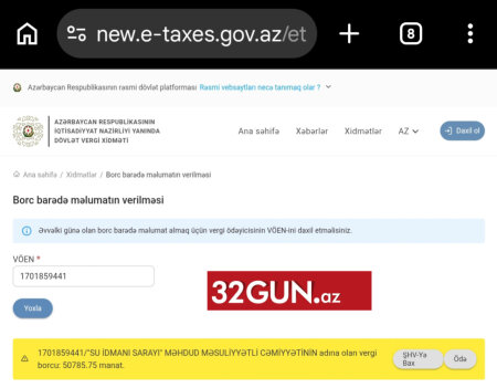 32gun.az-ın əldə etdiyi məlumata görə, sarayın hazırda vergi öhdəliyi 50 785,75 manat təşkil edir.
