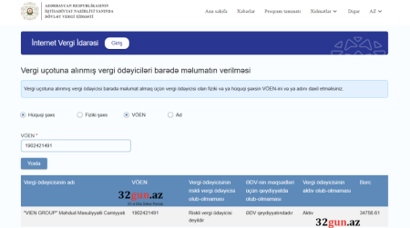 32gun.azın əldə etdiyi digər məlumata görə, şirkətin dövlətə vergi borcu mövcuddur və borc məbləği 34.756,61 AZN təşkil edir.