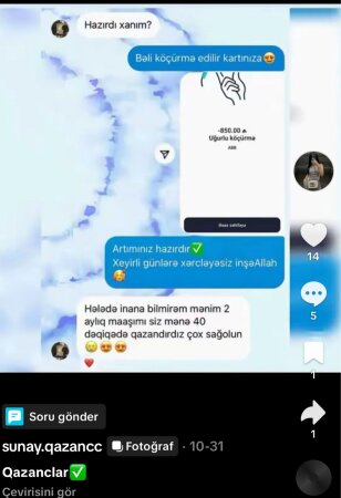 Teleqraf xəbər verir ki, “TikTok”da yeni açılmış “sunay.qazancc” adlı səhifə istifadəçiləri yalan vədlərlə aldadır.