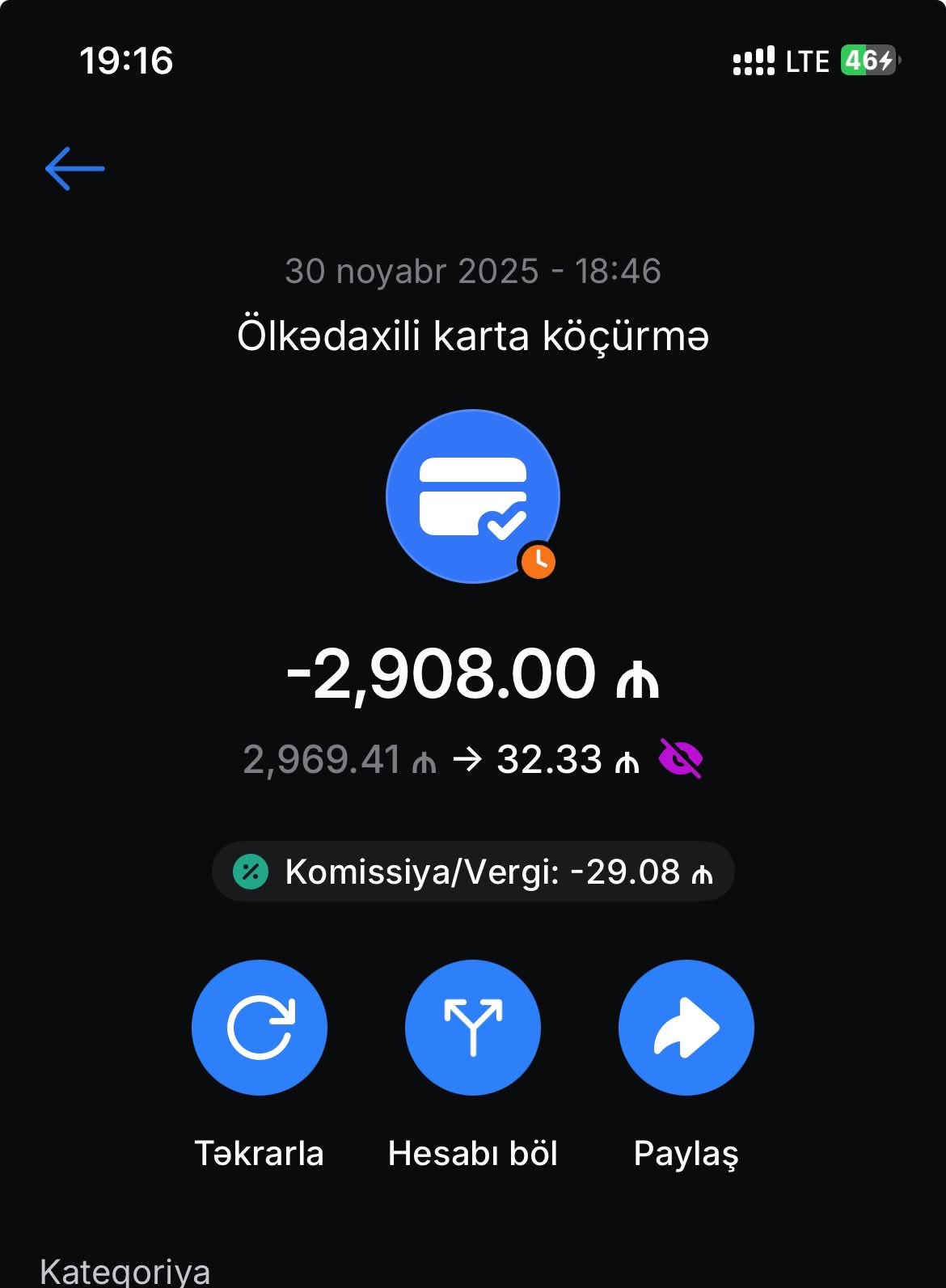 Narazı vətəndaş daha sonra bildirir: "Mən zatən 29.08 manatı görsə idim köçürməni etməyəcəkdim. Təzə taktikadır bu? Komissiya olan hissədə heç nə yazılmır, amma 29.08 manat balansdan çıxılır. Bunun bir adı var: saxtakarlıq. ABB-yə zəng etmişəm... deyirlər, texniki məsələdi. Mən pulumun geri qaytarılmasın tələb edirəm. Həm də çox sürətli şəkildə..."