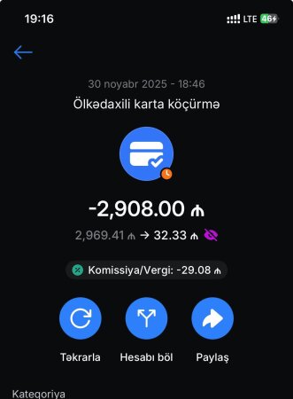 "Şikayətim ABB-dəndir. Köçürmə edirəm digər karta. Mən köçürmə edən zaman aşağıda komissiya vergi haqqı və başqa heç nə yazmır. Amma köçürməni edəndən sonra məndən 29.08 manat vergi tutur..." "DİA-AZ" xəbər verir ki, bu barədə "Müştəriyəm Şikayətim Var" sosial qrupundakı paylaşımında Səyyad Babayev adlı istifadəçi gileylənir.