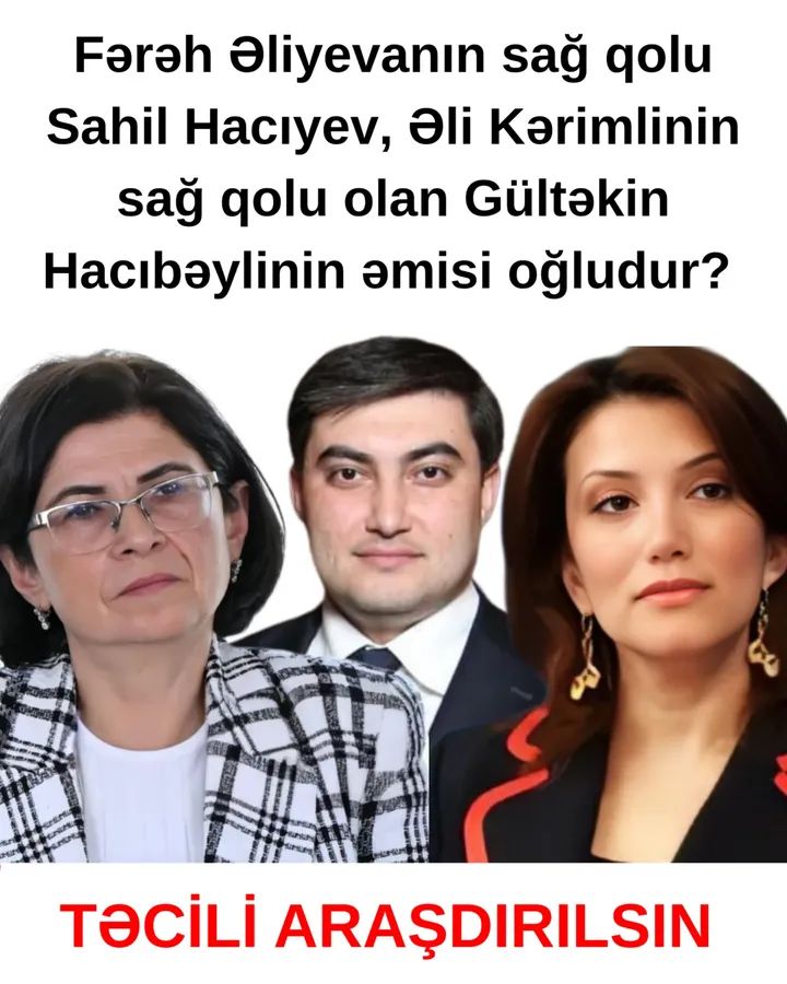 Əməkdar artist daha sonra bildirir: "Dediyinə görə, bu proseslərin koordinasiyasında Prezident Administrasiyasının Humanitar siyasət, diaspor, multikulturalizm və dini məsələlər şöbəsinin əməkdaşı Fərəh Əliyevanın mədəniyyət üzrə kuratoru Sahil Hacıyev xüsusi rol oynayır.İzləyicinin verdiyi məlumata əsasən, Sahil Hacıyev Gültəkin Hacıbəylinin doğma əmisi oğludur. O, əvvəlcə keçmiş rektor Abel Məhərrəmovun köməkçisi olub və daha sonra Fərəh Əliyevanın şəxsi xahişi ilə şöbəyə gətirilib. İddialara görə, bu gün mədəniyyət sahəsində müşahidə olunan bir çox haqsızlıqlar məhz onun koordinasiyası ilə həyata keçirilir.
