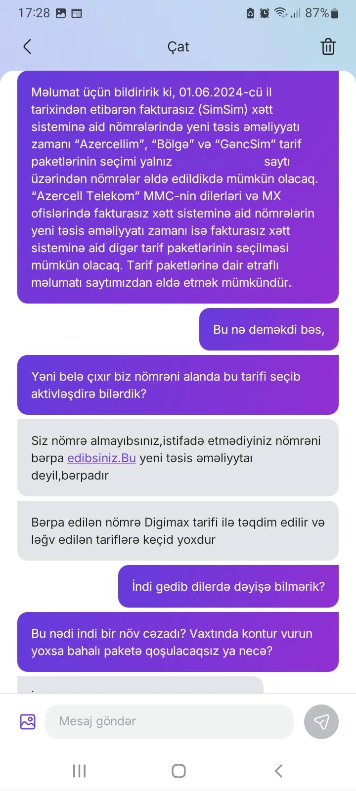 Narazı vətəndaş daha sonra bildirir: "Amma hal-hazırda https://www.azercell.com/.../tariffs-archive/azercellim.html saytında tarif də var məlumatlar da.