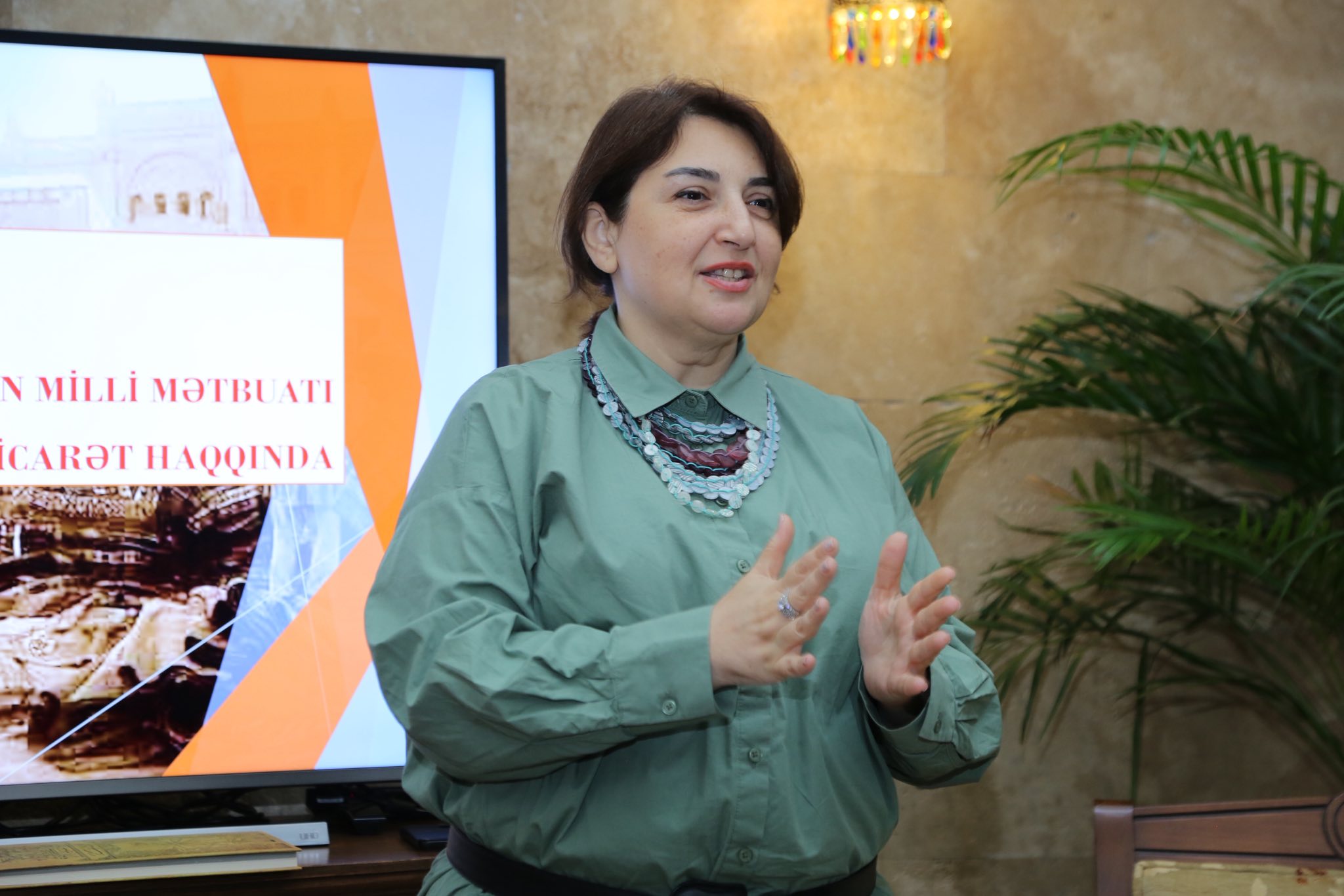 Tədbir çərçivəsində filologiya üzrə fəlsəfə doktoru Şəhla Abdullayeva çıxış edərək Zərdabi dövrü və sonrakı mərhələlərdə Azərbaycan mətbuatında ticarət və iqtisadi məsələlərin işıqlandırılması barədə ətraflı məlumat verib. O bildirib ki, “Əkinçi”, “Kəşkül”, “İrşad”, “Həyat”, “Tərəqqi”, “Bəsirət”, “Molla Nəsrəddin”, “Açıq söz”, “Azərbaycan” kimi qəzet və jurnallarda sahibkarlıq fəaliyyəti, bazar münasibətləri, gömrük siyasəti, daxili və xarici ticarət əlaqələri, eləcə də kənd təsərrüfatı və taxıl böhranı kimi mövzular geniş şəkildə əks olunub. Qeyd edilib ki, milli mətbuat maariflənmə və iqtisadi biliklərin təşviqi yolu ilə dövrün çağırışlarına cavab verməyə çalışıb.