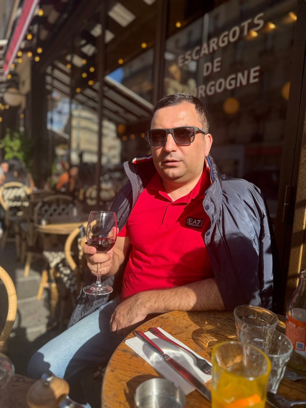Gəlin başlayaq... Fransanın paytaxtı Parisdə yerləşən Louvre Muzeyi (Musée du Louvre) önündə əlində qırmızı şərab olan fotosuna S.Teymurov həmin fotoya “In vino veritas” (“Şərabda həqiqət var”) sözlərini qeyd edib.
