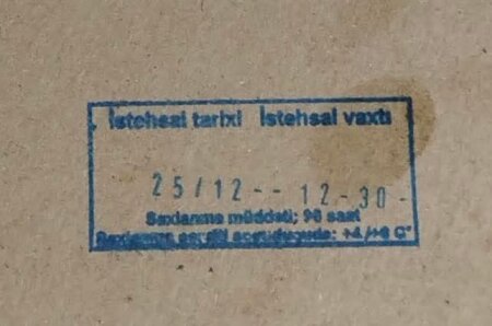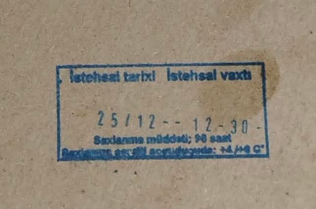 Narazı vətəndaş daha sonra bildirir: "İki gün sonra, yəni ayın 27-si yeyilib. Üzərində qeyd edilib ki, saxlama müddəti 96 saatdır.