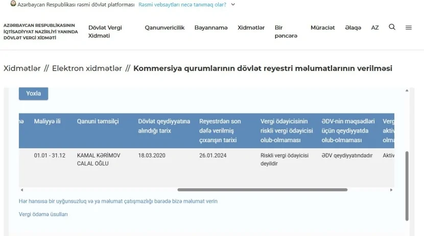 Kənd Təsərrüfatı Nazirliyinə verilən sorğu zamanı məlum olub ki, Kamal Kərimovun rəhbəri olduğu Kürəmir Aqro MMC-nin icarəyə götürdüyü örüş torpaqları barədə məlumat Elektron Kənd Təsərrüfatı İnformasiya Sistemində 29 oktyabr 2025-ci il tarixində qeydiyyatdan keçib. Amma bəyanları yoxdur.